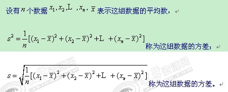 和数据的集中程度一样,数据的离散程度也是数据分布的另一个重要特征,它所反映的是各个数据远离其中心值的程度,因此也称为离中趋势。方差和标准差刻画的是这组数据偏离其平均数的平均程度。当两组数据的平均数相等或相近时,方差或标准差可以用来比较两组数据离散程度的大小。方差或标准差越大,说明数据的离散程度越大,反之,方差或标准差越小。