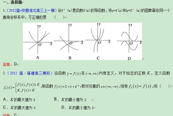 精题分解:导数在研究函数中的应用(1)(2013届高三备考)