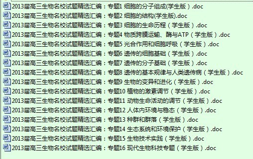 【打包下载】2013届高三生物名校试题精选汇编(学生版)(16个专题)