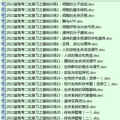 【打包】2013届高考生物二轮复习之基础训练(21份)