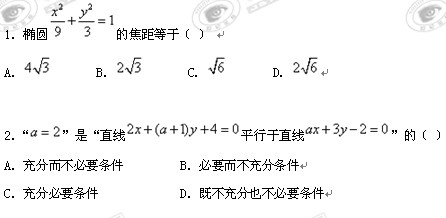 北京市北京四中09-10学年高二上学期期末考试(数学理)